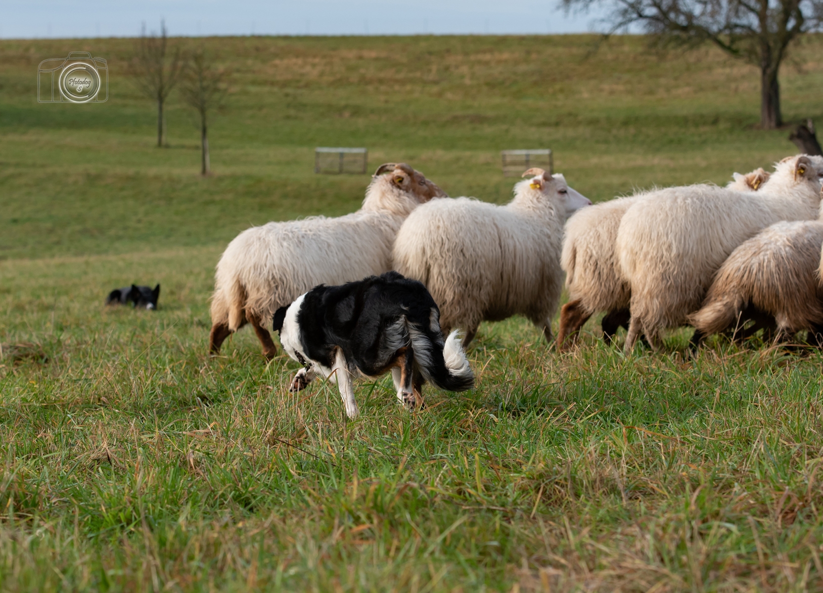 Dawn ist ein BorderCollie aus Leistungszucht und wird gerade zum Helfer an den Schafen ausgebildet.