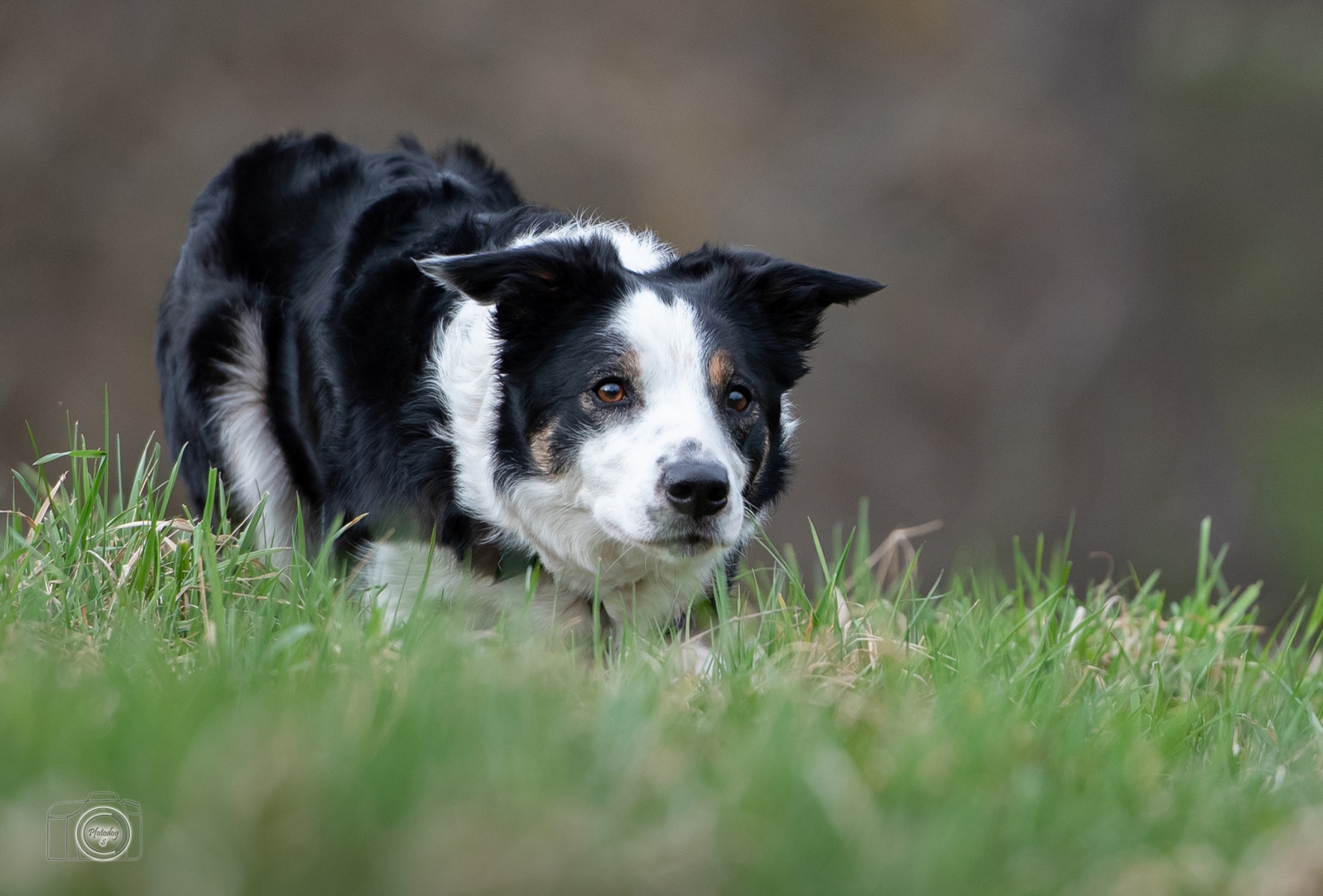 Dawn ist ein BorderCollie aus Leistungszucht und wird gerade zum Helfer an den Schafen ausgebildet.